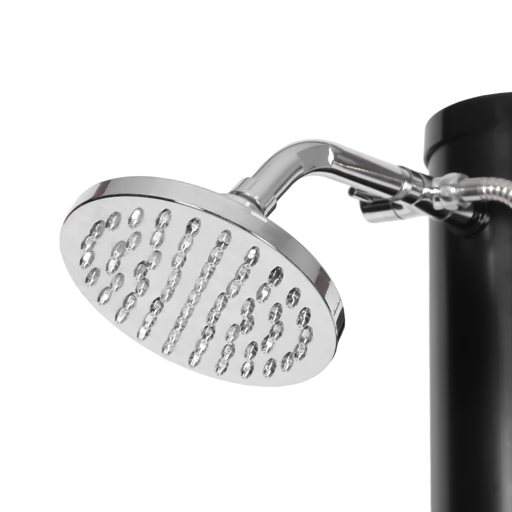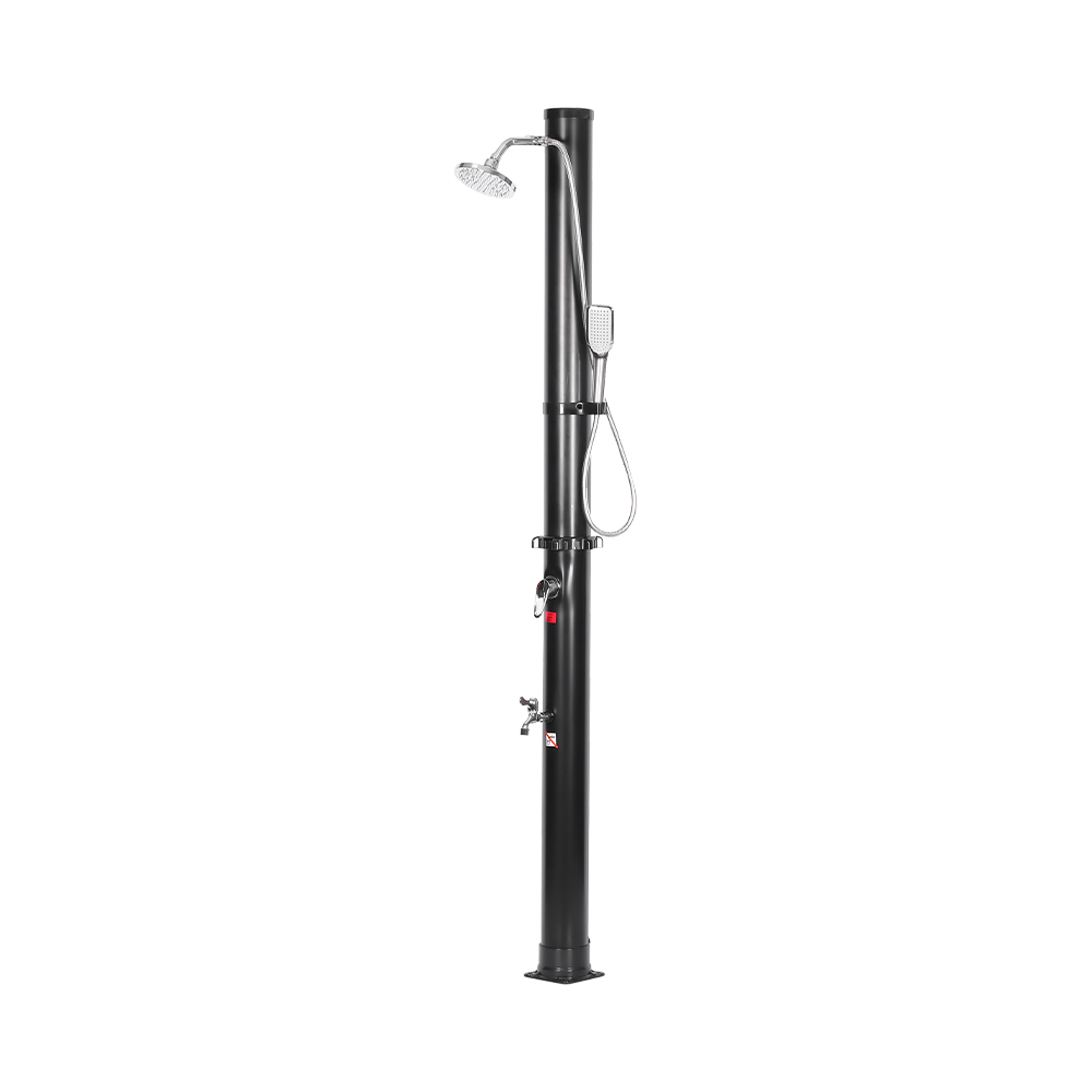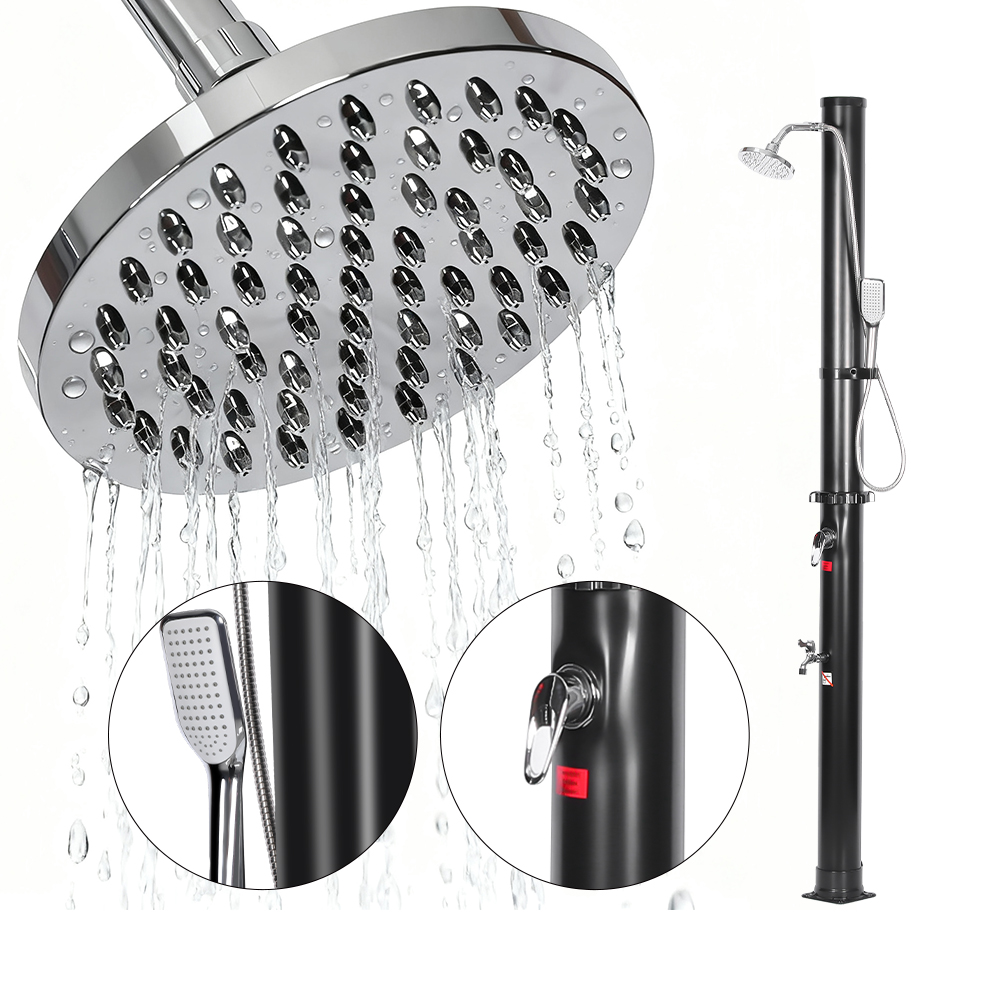 Acest cap de duș LY18L05-HB 18L cu două secțiuni ABS cromat duș solar duș de grădină în aer liber include o conexiune convenabilă pentru furtun de grădină pentru umplere ușoară și un dop de scurgere care permite golirea rapidă atunci când pregătiți unitatea pentru depozitarea pe timp de iarnă. Odată ce conducta de duș este umplută, apa se încălzește în mod natural utilizând energia solară, iar robinetul de baterie integrat simplifică reglarea apei la temperatura preferată pentru o experiență confortabilă de duș. Toate componentele sunt fixate bine cu șuruburi pentru a asigura durabilitatea, iar pentru o funcționare în siguranță, dușul trebuie să fie corect ancorat de sol. Sunt furnizate instrucțiuni clare, în mai multe limbi, pentru a vă ghida prin instalare și utilizare, făcând procesul de configurare simplu și fiabil.