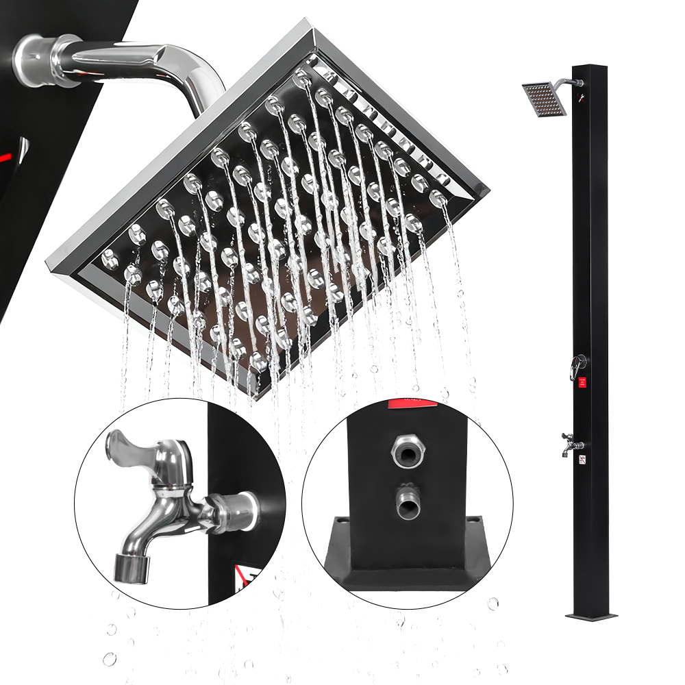 Acest duș solar integrat reglabil LY18L08-SS este proiectat atent atât pentru confort, cât și practic. Capul de duș cu efect de ploaie de dimensiuni generoase, echipat cu o articulație sferică integrată, se poate pivota până la 180°, permițându-vă să reglați unghiul pentru o experiență plăcută și răcoritoare de duș. Fabricat din plastic rezistent la UV, unitatea este durabilă și poate fi demontată rapid pentru transport sau depozitare ușor atunci când nu este utilizată. Baza robustă, realizată din oțel inoxidabil, ABS, cupru și alte materiale de încredere, asigură o instalare sigură și stabilă chiar și pe diferite suprafețe exterioare. Folosirea dușului este simplă — pur și simplu umpleți conducta de duș cu un furtun de grădină standard, lăsați soarele să încălzească apa în mod natural și apoi utilizați robinetul integrat pentru a regla temperatura după preferințele dvs., creând o experiență de duș în aer liber convenabilă și plăcută.