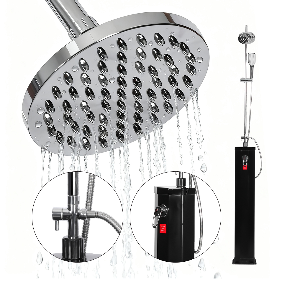 Acest duș solar din pvc LY18L09-B 18L la piscină cu duș mobil din oțel inoxidabil este conceput pentru a aduce confort și relaxare într-o varietate de setari exterioare, fie în grădină, lângă piscină sau în excursii în camping, oferind o soluție modernă pentru a vă bucura de apă caldă fără a fi nevoie de surse externe de energie. Dispune de un cap de duș cu efect de ploaie supradimensionat, cu o articulație sferică încorporată, care permite o ajustare ușoară până la 180°, asigurând flexibilitate în utilizare și simplificând configurarea. Capul de duș flexibil în stil pădure tropicală îmbunătățește experiența, permițându-vă să controlați cu ușurință fluxul de apă, creând o senzație liniștitoare, asemănătoare cu un spa, asemănătoare cu a sta sub o cascadă naturală. Împreună, aceste caracteristici oferă o experiență de duș revigorantă și personalizabilă, făcându-l ideal pentru oricine caută atât practic, cât și relaxare în aer liber.