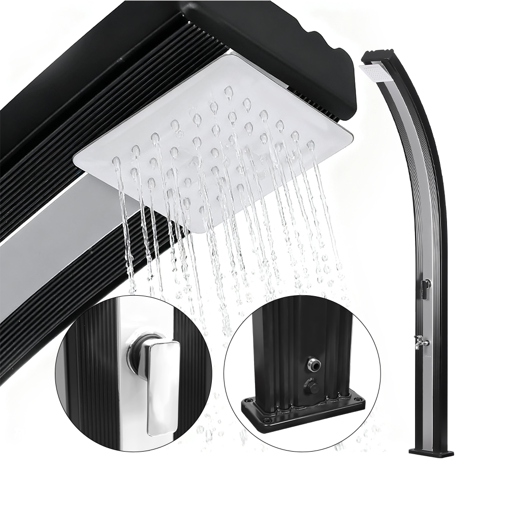 Acest duș solar îndoit din aluminiu pentru piscină exterioară LY30L01 dispune de o conductă de duș din aluminiu de 30 de litri, oferind multă apă pentru o experiență de duș confortabilă și plăcută, fie în grădină, lângă piscină sau în altă parte. Robinetul de baterie cu o singură manetă permite reglarea rapidă și ușoară a temperaturii apei, permițându-vă să setați cu ușurință temperatura ideală după bunul plac, îmbunătățind experiența generală a utilizatorului. Conducta de duș din aluminiu nu numai că oferă o capacitate mare, dar oferă și durabilitate și conductivitate termică excelente, făcând dușul solar îndoit din aluminiu pentru piscina exterioară LY30L01 mai eficient și convenabil.