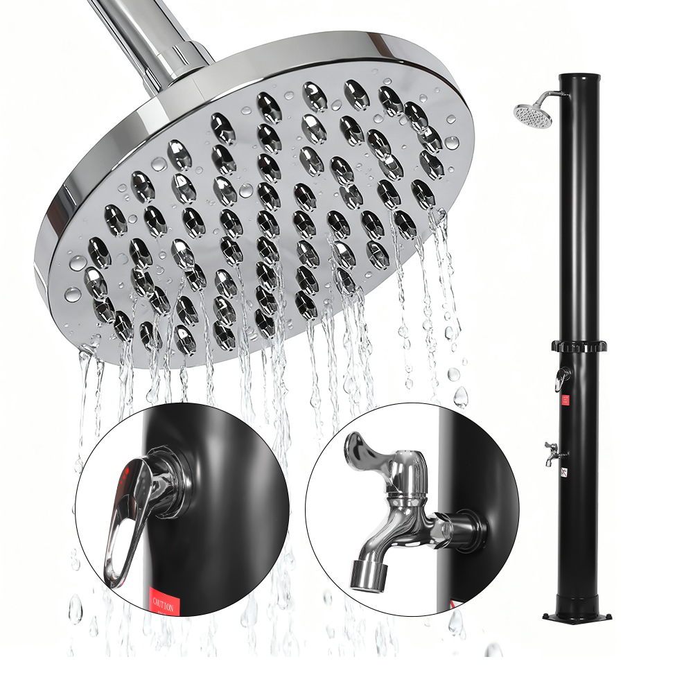 Acest duș solar de grădină în aer liber LY35L01 cu țeavă de duș de mare capacitate este proiectat pentru utilizare în aer liber pentru familii, având o țeavă de duș de dimensiuni generoase care poate încălzi apa la aproximativ 60°C în lumina puternică a soarelui, fără a necesita electricitate. Pur și simplu conectați un furtun de grădină standard pentru a umple conducta de duș și toată lumea se poate bucura de un duș răcoritor în grădină, lângă piscină sau într-un camping. Pentru un plus de confort, include o tavă metalică încorporată pentru a menține gelul de duș sau alte obiecte mici la îndemână, în timp ce un orificiu de drenaj în partea inferioară asigură o curgere lină a apei și previne stagnarea apei. Când nu este utilizat, dușul poate fi dezasamblat cu ușurință pentru depozitare compactă, făcându-l practic pentru utilizare sezonieră sau transport în diferite locații.
