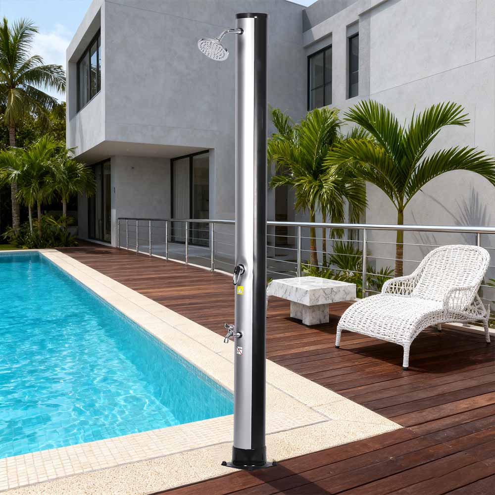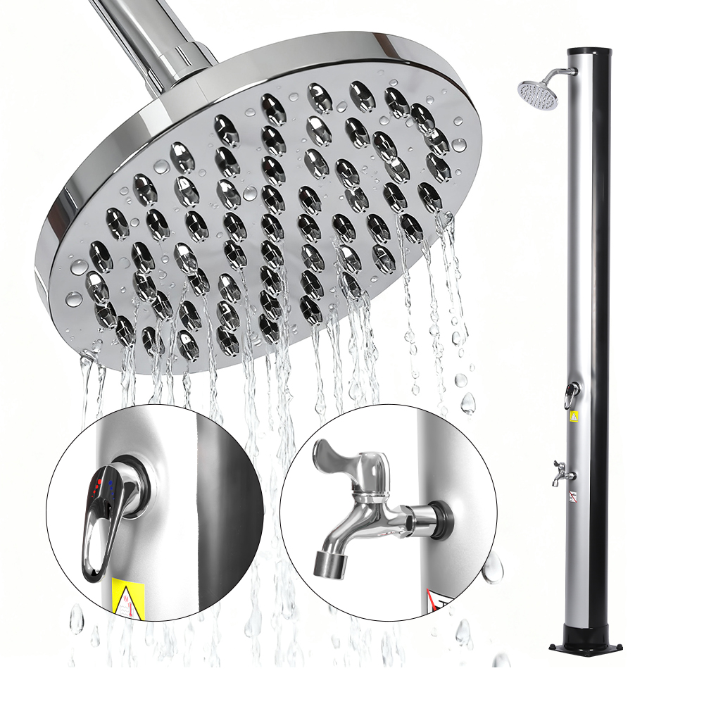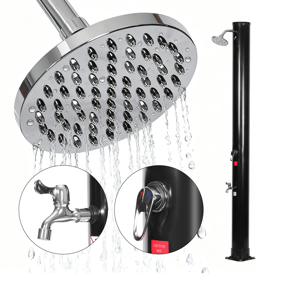 Țeava de duș de dimensiuni generoase a acestui duș solar portabil ecologic LY35L06 valorifică puterea soarelui de a încălzi apa până la 60°C, nefiind nevoie de electricitate și oferind o soluție ecologică pentru scăldat în aer liber. Pur și simplu conectați un furtun de grădină standard pentru a umple conducta de duș, iar întreaga familie se poate bucura de un duș revitalizant în grădină, lângă piscină sau într-o excursie de camping. O tavă metalică încorporată practică menține elementele esențiale de duș, cum ar fi săpunul și șamponul, la îndemână, în timp ce fantele de drenaj din partea inferioară împiedică acumularea apei, asigurând o experiență curată și plăcută. Capul de duș cu efect de ploaie rotativ la 360°, montat pe o articulație sferică integrată, vă permite să reglați cu ușurință direcția fluxului de apă, creând o senzație plăcută de răcire, în timp ce robinetul suplimentar pentru clătirea picioarelor oferă o modalitate convenabilă de a vă împrospăta rapid. Proiectat pentru confort, acest duș poate fi dezasamblat cu ușurință pentru o depozitare compactă, care economisește spațiu în timpul extrasezonului sau pentru transport în timpul călătoriilor.