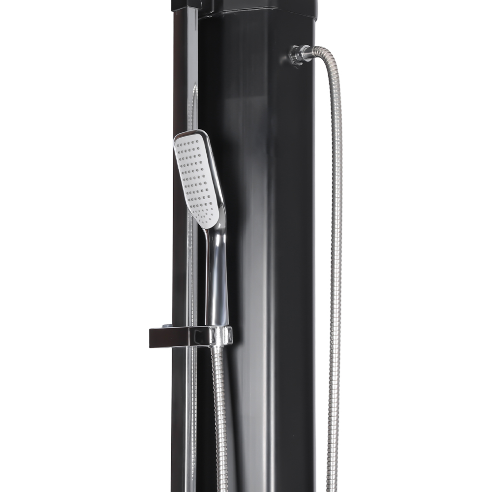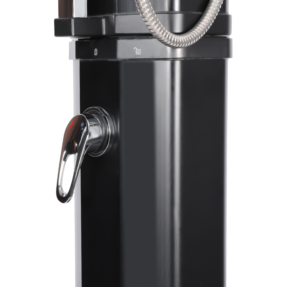 Acest duș solar de grădină LY35L08-HB stabil și eficient de mare capacitate funcționează eficient folosind lumina soarelui. Conducta sa mare de duș, de 35 de litri, încălzește apa la aproximativ 60°C în lumina soarelui suficientă. Reumplerea este simplă, nu necesită electricitate și poate fi realizată cu ușurință prin conectarea la un furtun de grădină standard. Capul său mare de duș cu ploaie oferă o experiență de răcire confortabilă, iar articulația sferică integrată îi permite să se rotească până la 180° pentru diferite unghiuri. Instalarea este, de asemenea, foarte convenabilă. Structura generală este realizată din plastic durabil, rezistent la UV, rezistând eficient la expunerea prelungită în aer liber. Capul de duș se dezasambla rapid pentru un transport ușor între locații sau depozitare în afara sezonului. O bază metalică robustă asigură stabilitate și siguranță odată instalată, permițându-vă să vă bucurați de un duș confortabil în aer liber în grădină, lângă piscină sau în camping.