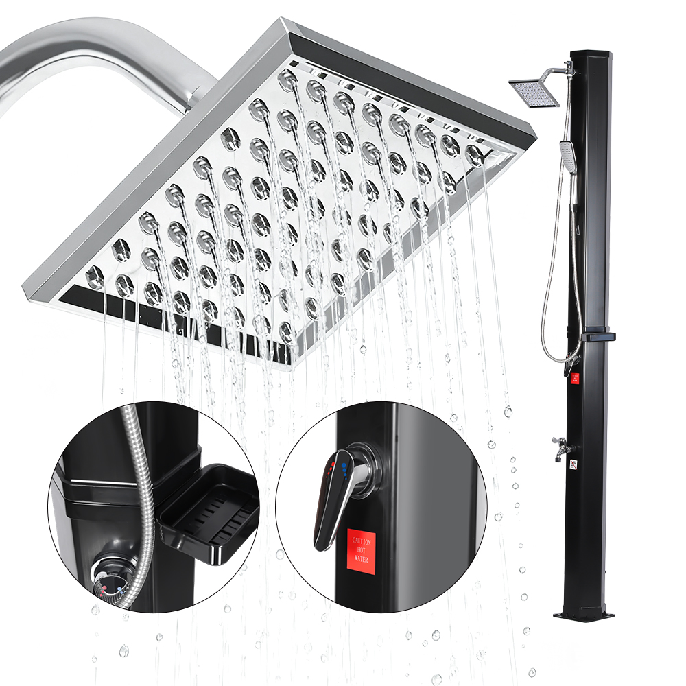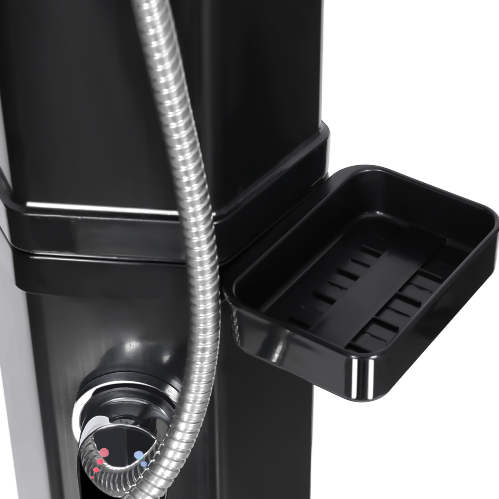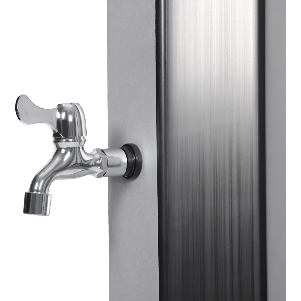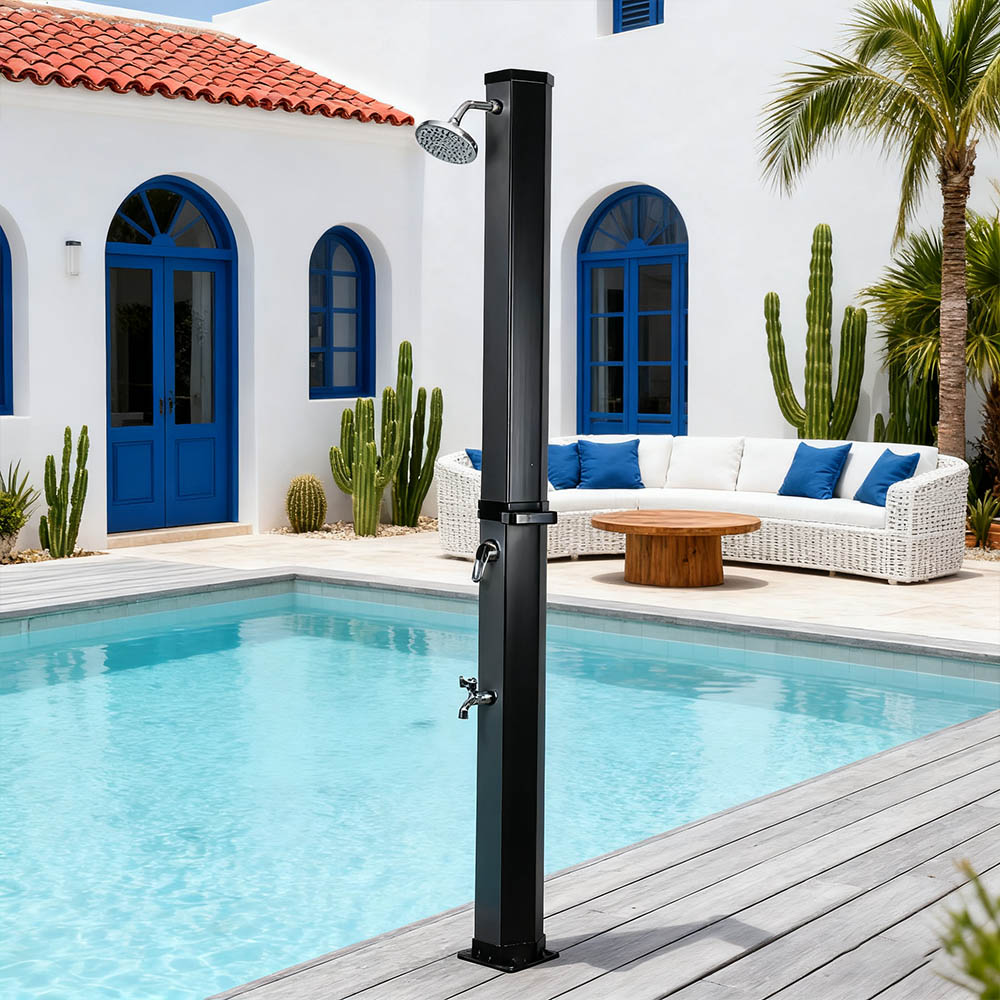 Acest duș solar exterior LY35L09, ușor de transportat și transportat, este proiectat pentru o utilizare versatilă, oferind o experiență confortabilă de duș fierbinte în grădină, lângă piscină sau în camping. Nu se bazează pe nicio sursă externă de energie, bucurându-se de confortul încălzirii naturale cu lumina solară. Dispune de o conexiune standard pentru furtun de grădină pentru umplere rapidă și ușoară, iar un dop de scurgere permite golirea ușoară a conductei de duș înainte de iarnă, prevenind deteriorarea apei acumulate. Designul său detașabil permite dezasamblarea rapidă și depozitarea compactă, făcându-l ideal pentru depozitarea care economisește spațiu atunci când nu este utilizat, fiind în același timp ușor de transportat și transportat, permițându-vă să vă bucurați de confortul unui duș în aer liber oricând și oriunde.